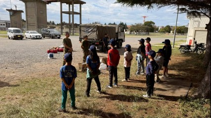 ![]() | 待ちに待った富士登山当日です。 お天気もいいし、みんなワクワクして集まりました。 大きなに荷物も自分でしょわなければなりません。 大型バスの前で記念写真、笑顔のみんな帰りにはどうかな? 小学一年生~六年生、団員は総勢12名元気に出発! |